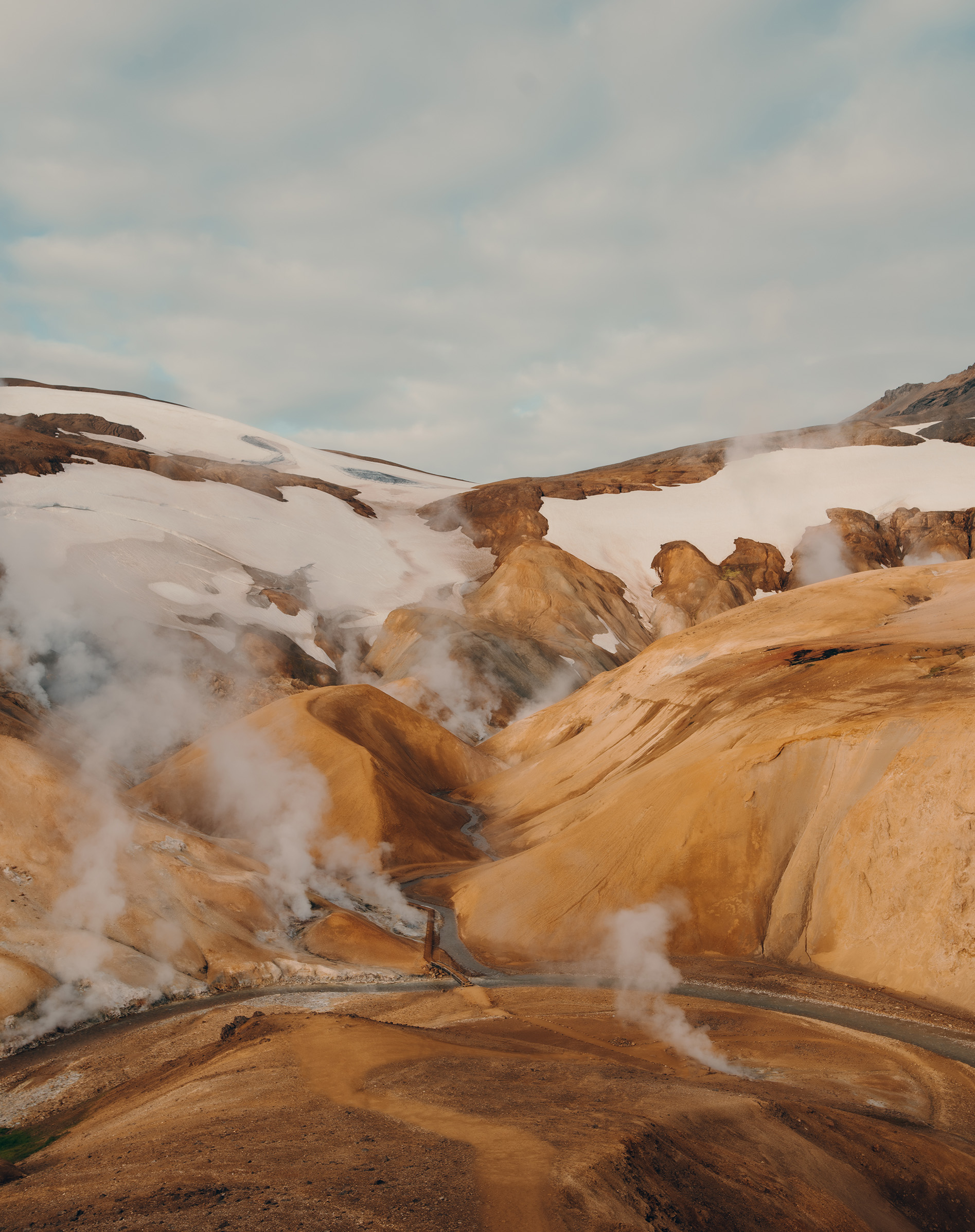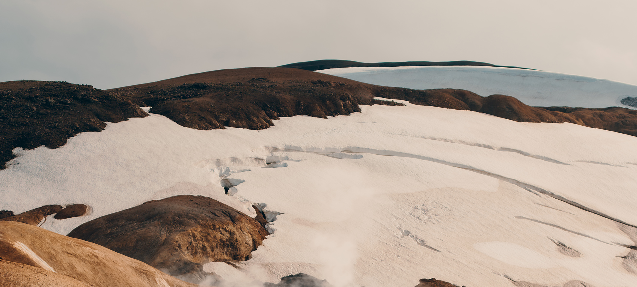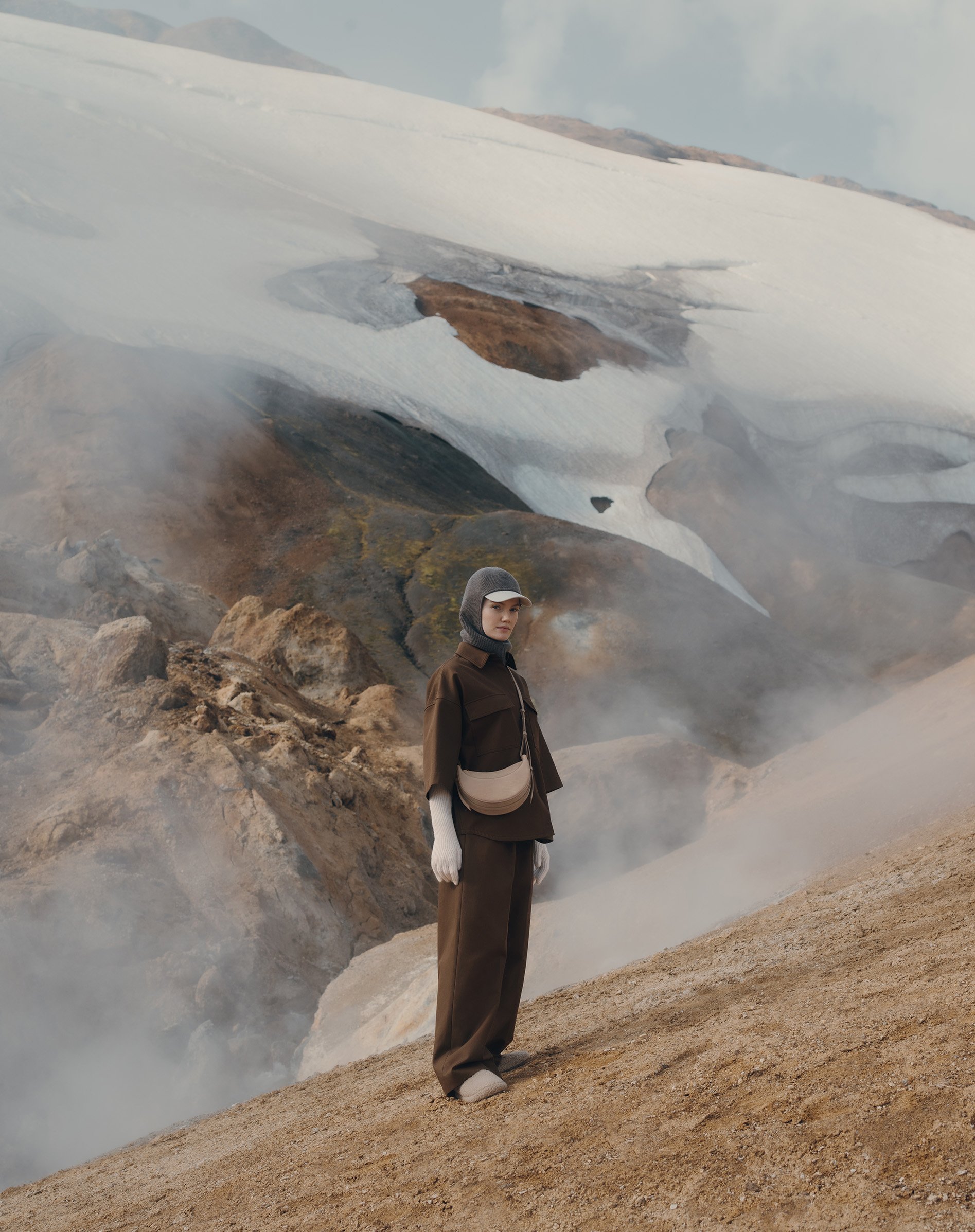 Un moment suspendu. Le massif volcanique de Kerlingarfjöll s'éveille au rythme des vapeurs géothermiques. Le changement de saison invite à la tranquillité. Rêves d’hibernation ou recherches du grand air, la nature islandaise inspire une reconnexion aux éléments. Aux différentes teintes de cuir de la saison répondent les couleurs changeantes d'un décor en fusion.