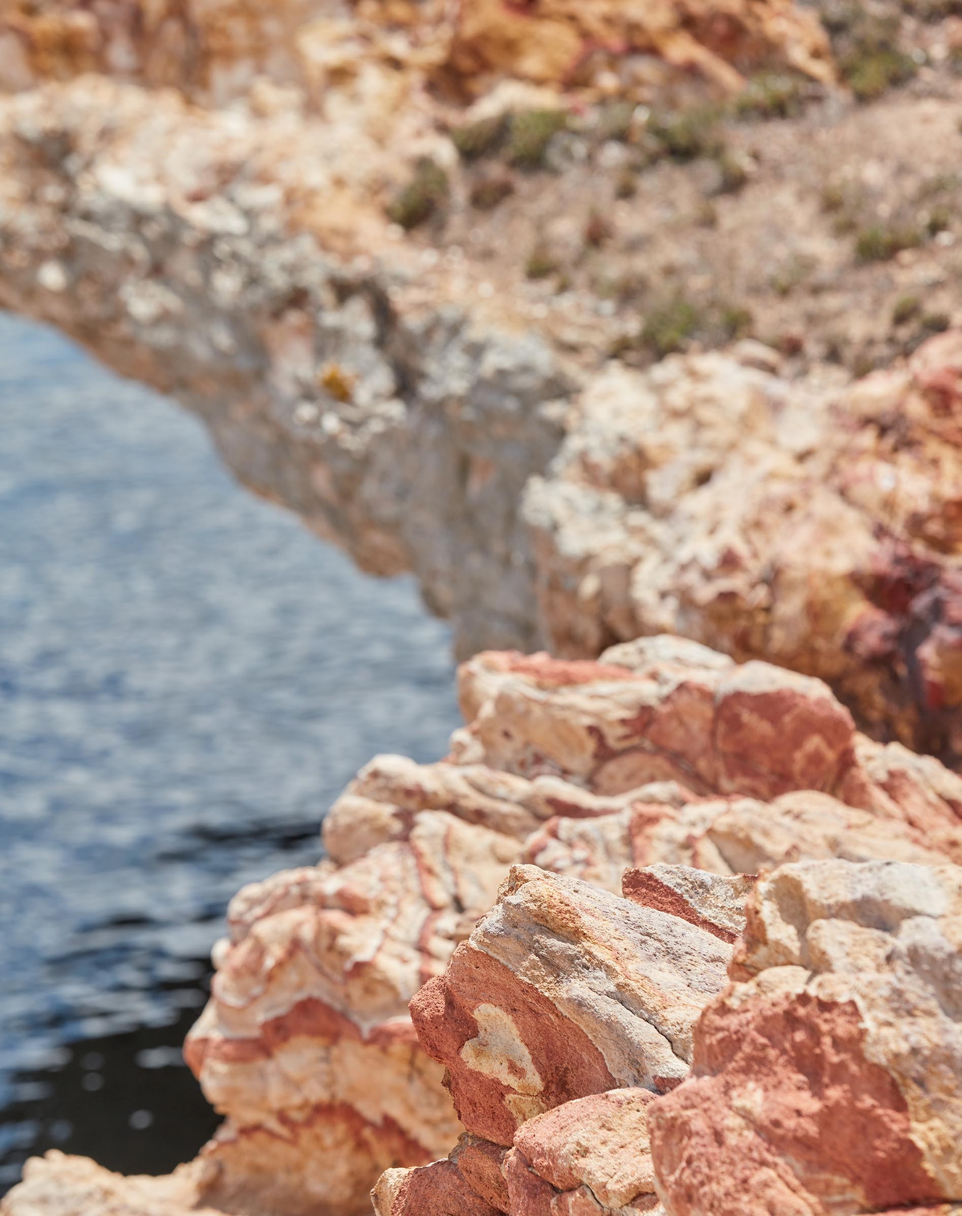 Une île solaire et minérale avec ses roches d'un beige rosé non sans rappeler la palette de couleurs chère à Polène. Ses parterres et reliefs organiques mettent en exergue les formes sculpturales des modèles de la collection.