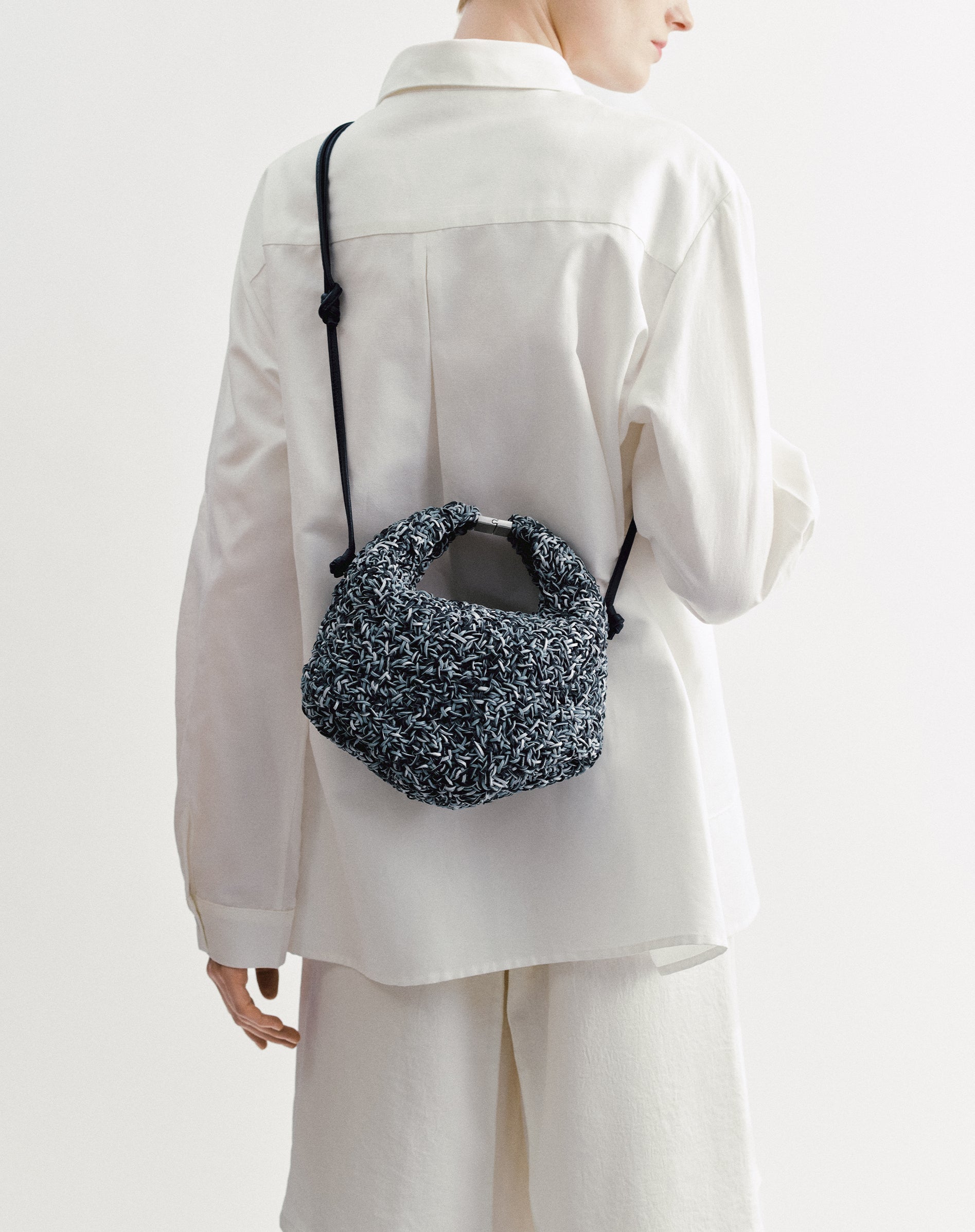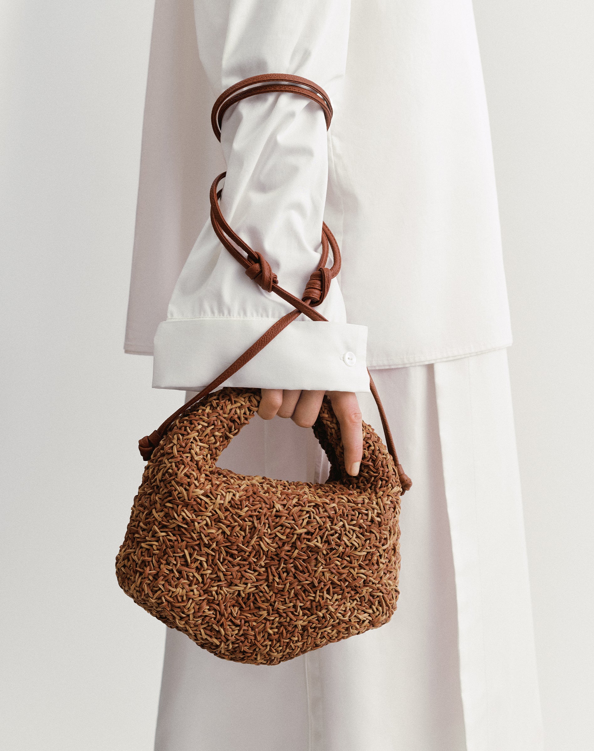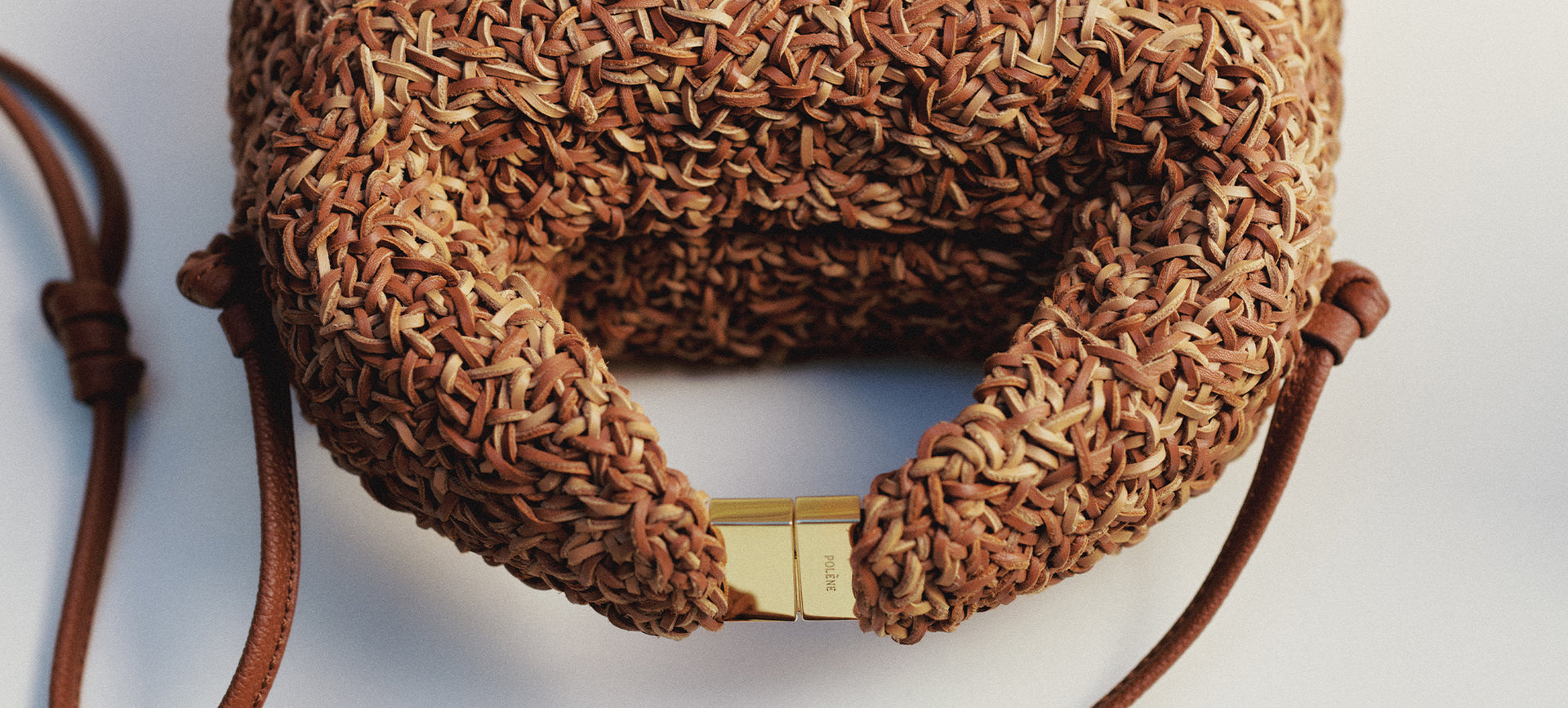 Fidèle à sa démarche, Polène puise dans la nature l’inspiration de l’Édition Rizom, où les cordons entrelacés du sac s’entremêlent comme les rhizomes, racines invisibles qui relient et prolongent la vie sous la surface.
