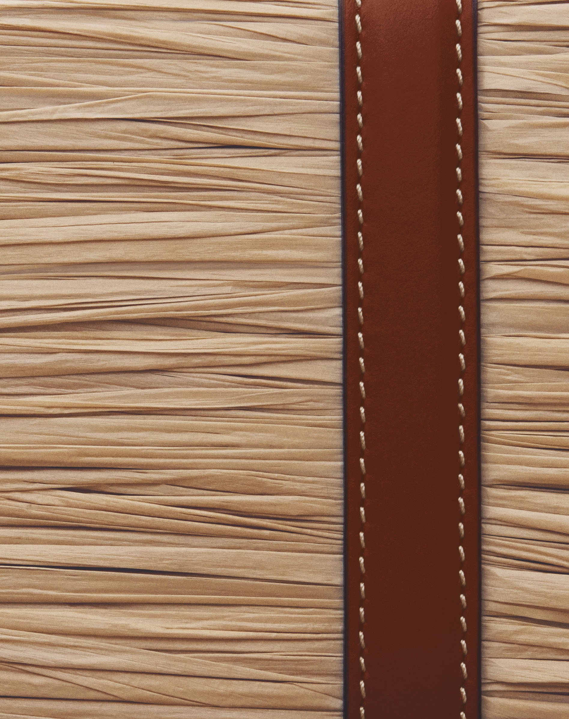 L’illusion d’une botte de paille faite sac, telle est la promesse créative et la prouesse artisanale du modèle Paï en raphia naturel. Aux origines de ce modèle inédit, un rêve créatif pour une maison dont le design des collections s’inspire de la nature. Ici la retranscription est littérale avec ce modèle habillé de tiges de raphia 100% naturel certifié bio, sanglé par deux lanières de cuir cognac et retenu par une bandoulière double.