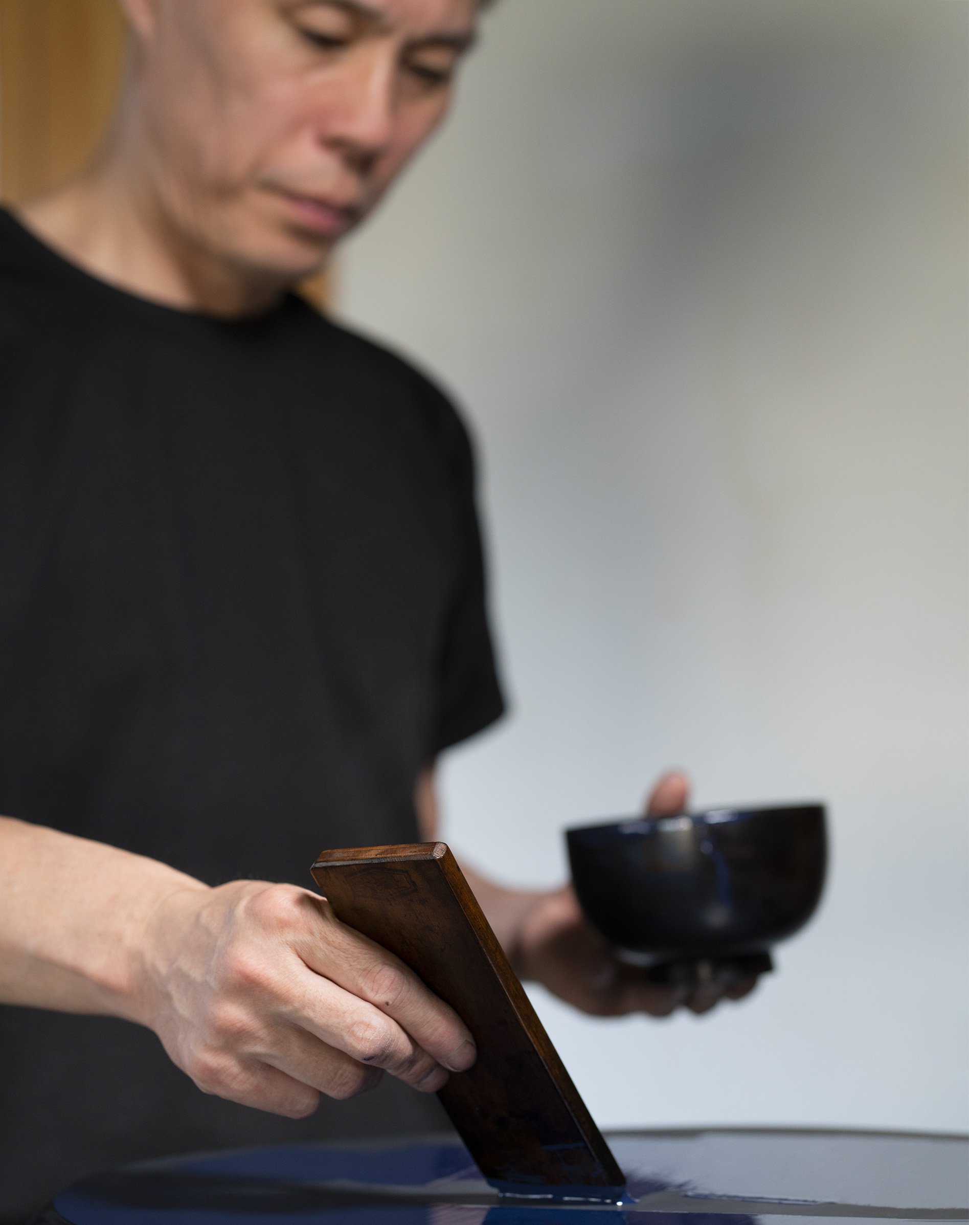 En valorisant la technique ancestrale japonaise de la laque Urushi, Polène rappelle son attachement aux savoir-faire. Appliquée avec minutie à la main, elle donne un aspect brillant et lisse à l’ensemble du mobilier en forme de roches d’un bleu obscur. Une teinte particulière également développée pour le cuir sur-mesure des assises.
