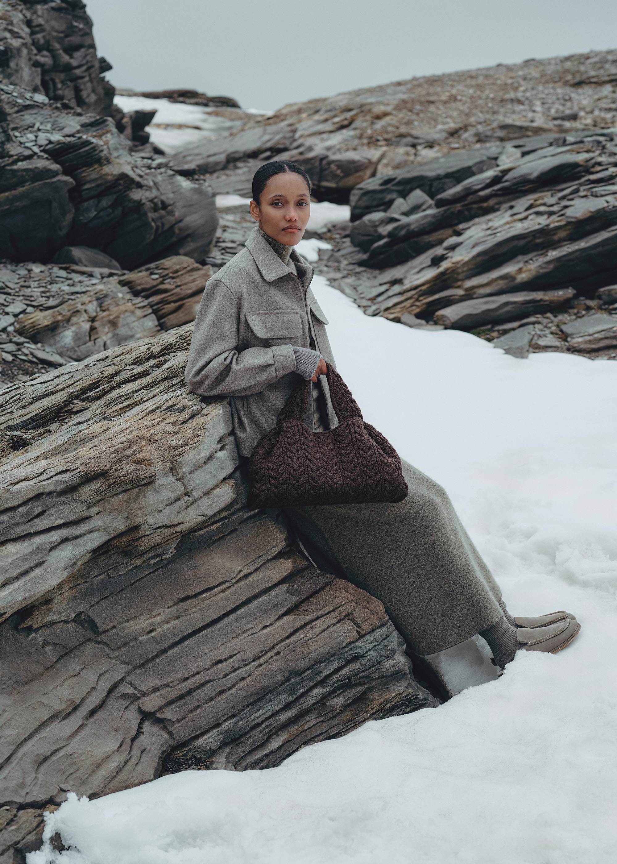 La douceur réconfortante de la laine mérinos contraste avec la silhouette sculpturale du Numéro Neuf, imaginé dans un format large. Prouesse artisanale, l'Edition Mérinos applique à un modèle de maroquinerie les techniques traditionnelles du tricot : tricotage à la forme selon la méthode « fully-fashioned »*, remaillage artisanal des bords à la main et point torsadé « horseshoe »**, signature du prêt-à-porter. Cette réédition hivernale explore les frontières du savoir-faire.